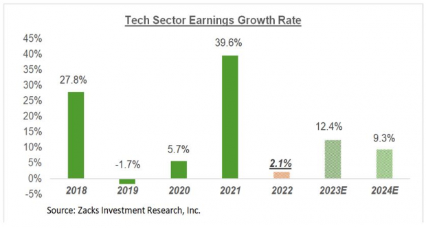 The Zacks Tech sector is expected to earn -8.8% less earnings in 2022 Q2 compared to the year-earlier period on +2.7% higher revenues. This means that the sector will suffer another quarter of margin compression in Q2, after going through the same thing in 2022 Q1, when earnings were up +4.5% on +8.8% higher revenues.