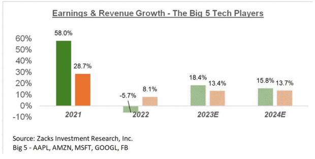 We see a comparable growth trend for the ‘Big 5’ Tech players – Apple AAPL, Amazon AMZN, Alphabet GOOGL, Meta FB and Microsoft MSFT – as well.
